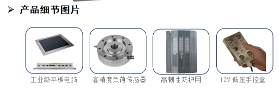u 試驗(yàn)機(jī)設(shè)計(jì)在美觀、便捷、安全方面有充分考慮,例如:12V低壓手控盒點(diǎn)動(dòng)操作控制下橫梁升降、液壓鉗口松緊,試驗(yàn)空間調(diào)整方便、快捷,控制靈活、安全;系統(tǒng)油路壓力小于25Mpa,既保證了油路的安全性又延長(zhǎng)了油路中各零部件的使用壽命;平臺(tái)上方配置高韌性防護(hù)網(wǎng),在試驗(yàn)空間與操作者之間形成隔離,能夠有效保證操作者安全;光杠、角板表面鍍鉻拋光,美觀、防銹。